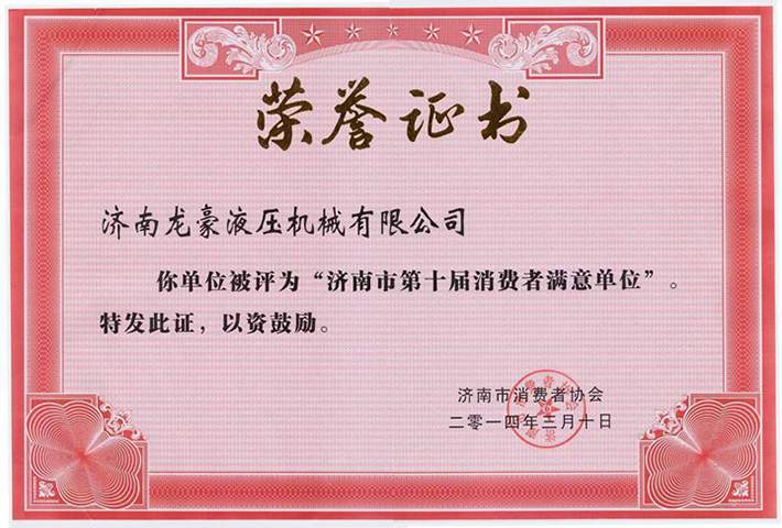 消費(fèi)者滿意單位證書